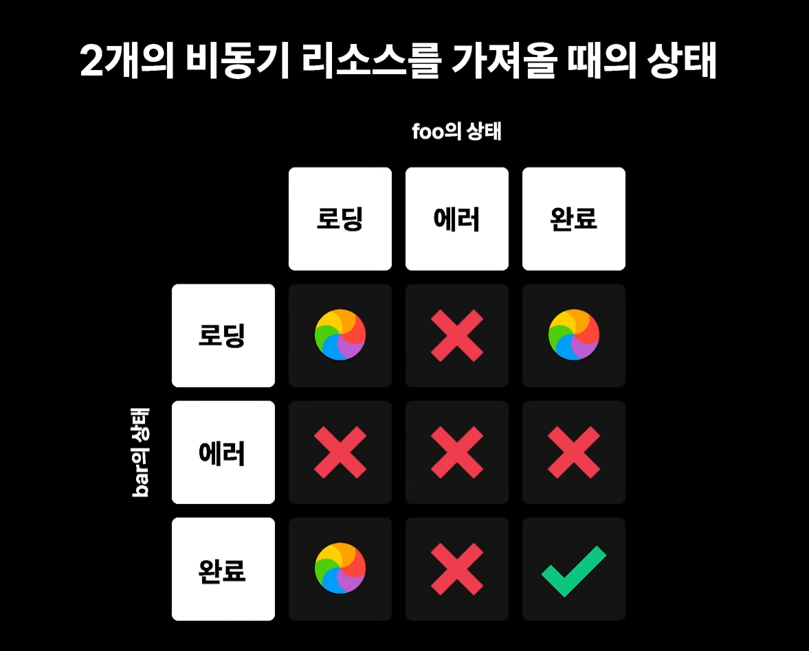 보통 비동기 작업의 대한 결과가 pending, error, success 세 가지 경우로 나눠지기 때문이다. 각 값마다 이런 모든 경우를 예외 처리해야 한다면 정말 끔찍한 일이 아닐 수 없을 것이다.